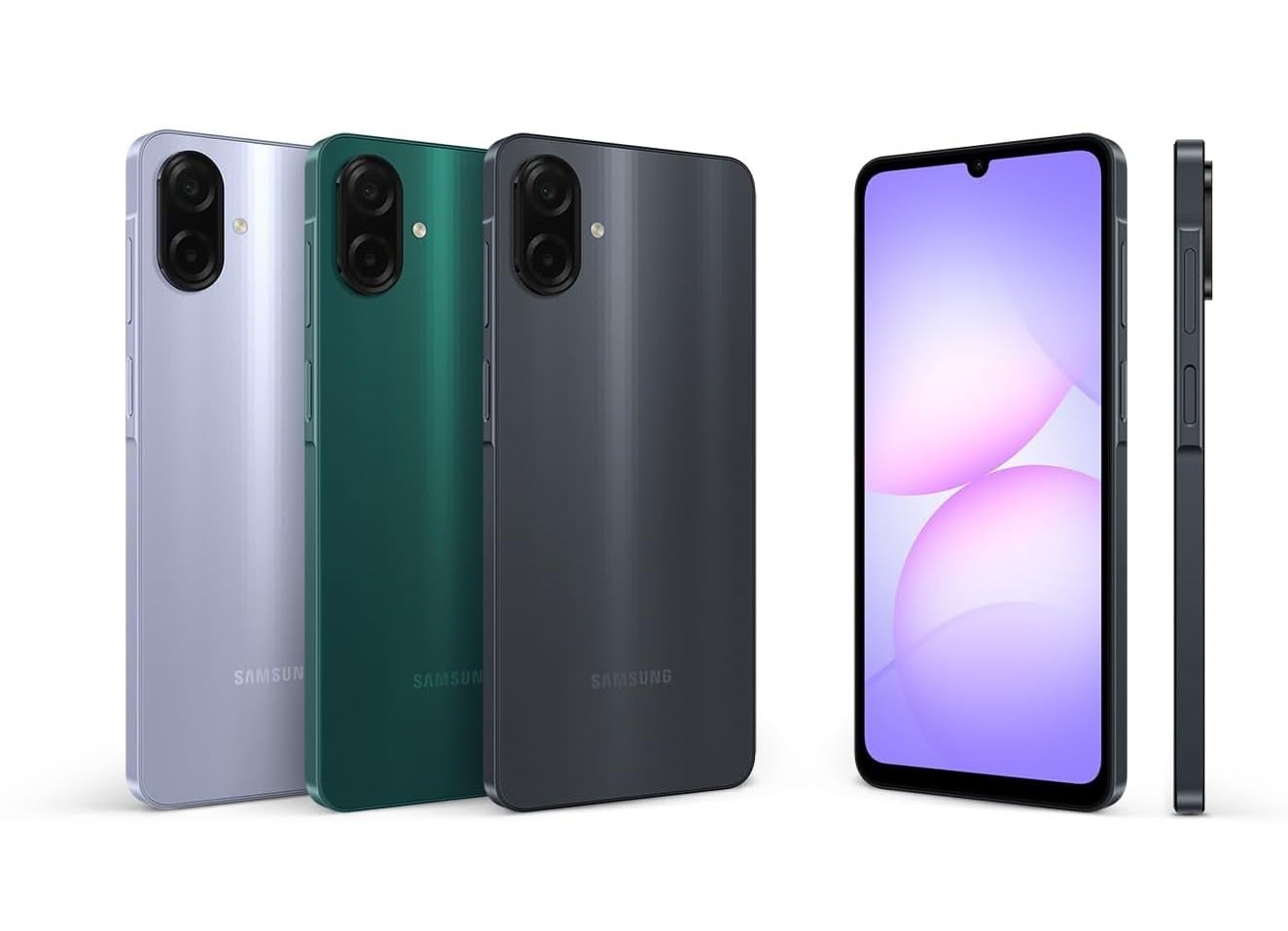 Step up your mobile experience with the Galaxy A07’s 7.6 mm thin design, available in Black, Light Violet, and Green.