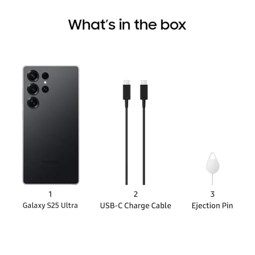 Samsung Galaxy S25 Ultra, 256GB Smartphone, Unlocked Android, AI Night Mode Camera, Snapdragon 8 Elite Fast Processor, 5000mAh Battery, Built-in S Pen, 2025, US 1 Yr Warranty, Titanium Black