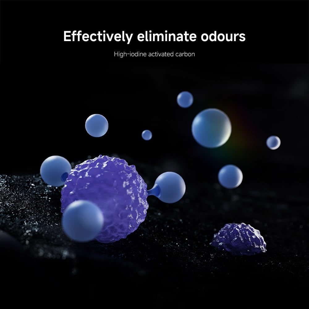 • Advanced Triple Filtration: Integrated electrostatic + mechanical filter combined with high-iodine activated carbon layer absorbs TVOC and unpleasant odours efficiently